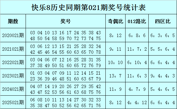 镇静8历史同时第021期号码分析