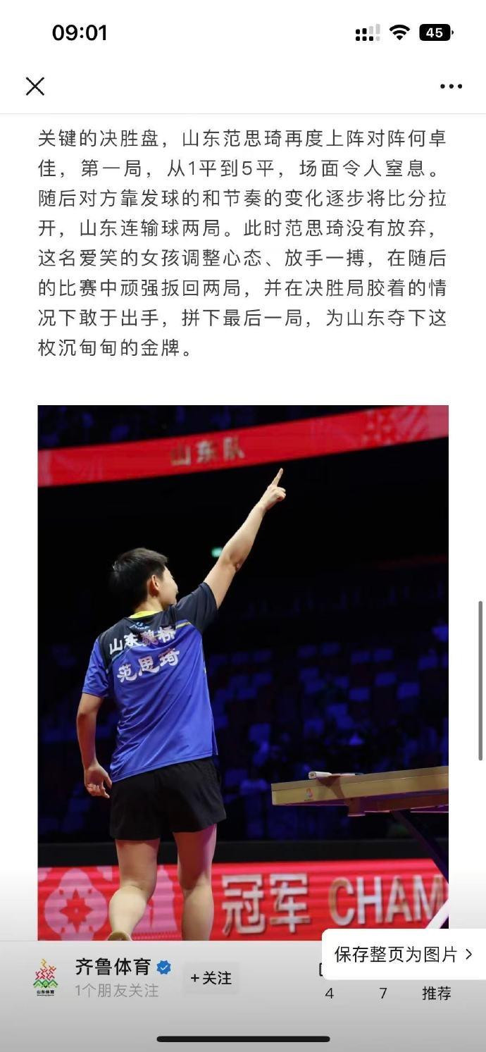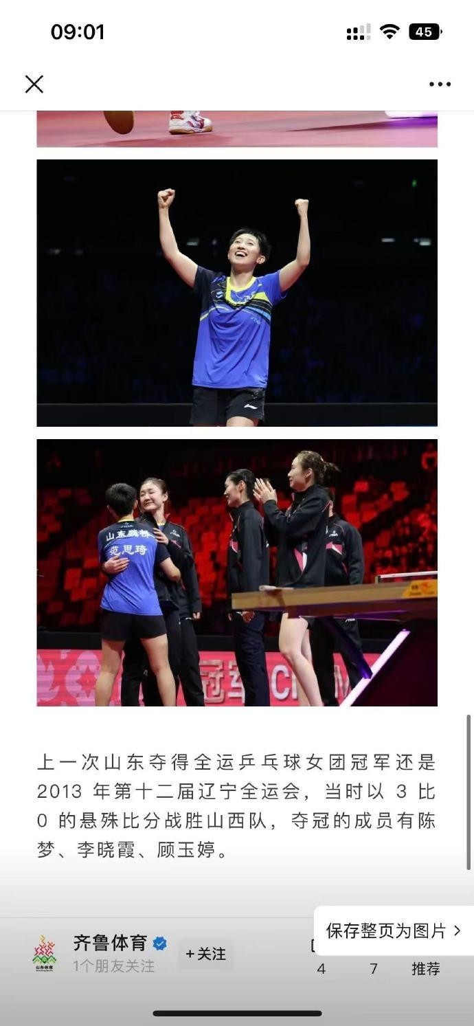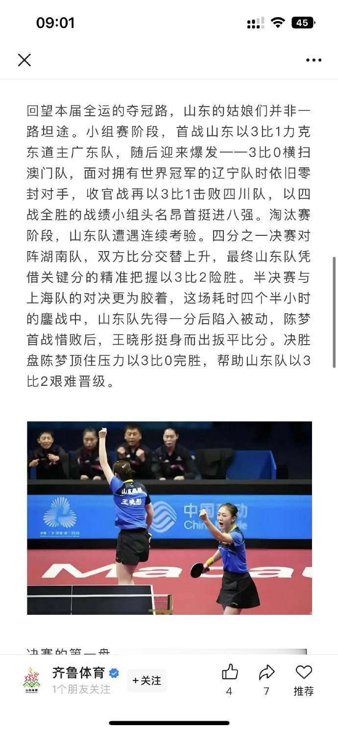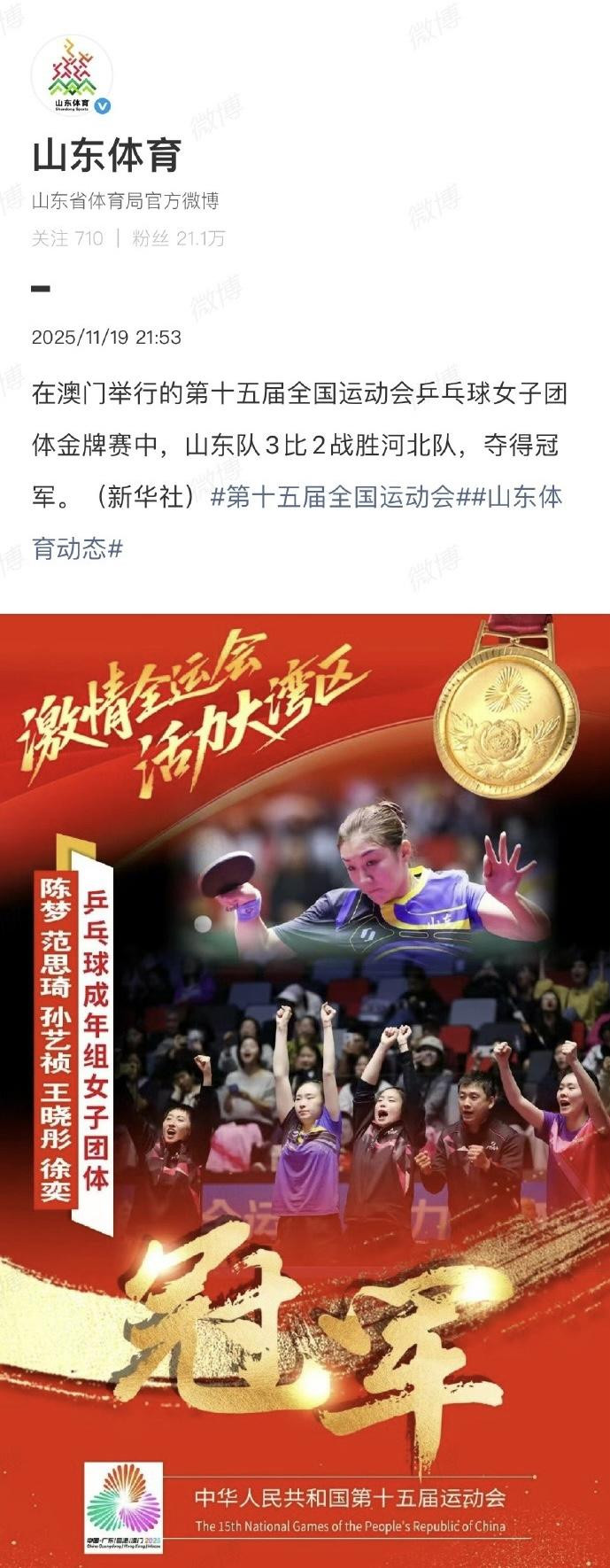 赛后,山东省体育局第一工夫发出夺冠音信。