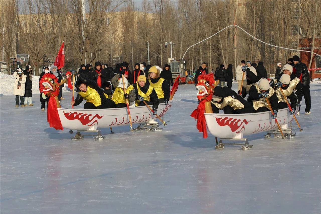 2024年东北石油大学冰雪体育文化节上的冰上龙舟(贵寓图)(图源:东北石油大学公众号)