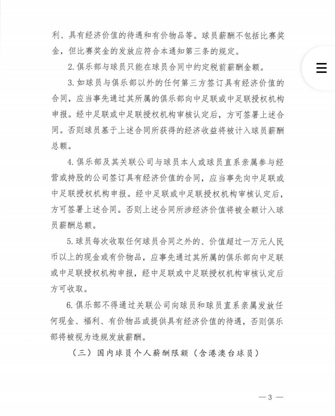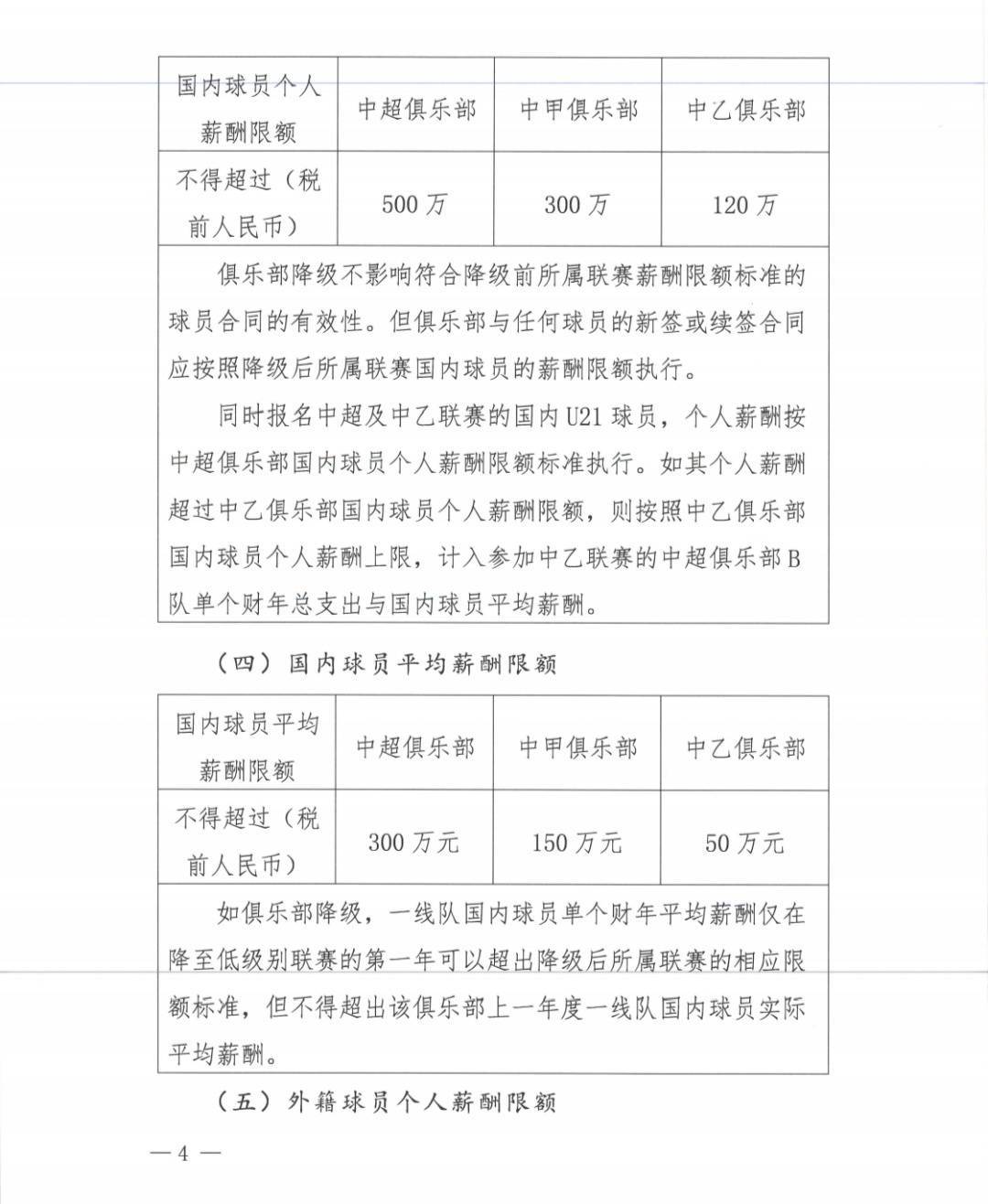 中超俱乐部国内球员个东谈主薪酬不得越过500万元(税前),中甲国内球员个东谈主薪酬不得越过300万元(税前),中乙国内球员个东谈主薪酬不得越过120万。