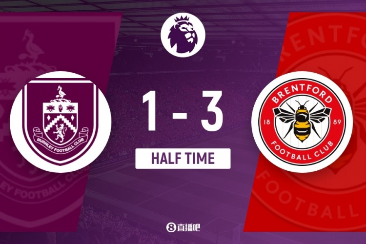 伤停补时3分钟。上半场比赛鸿沟,伯恩利1-3布伦特福德。
