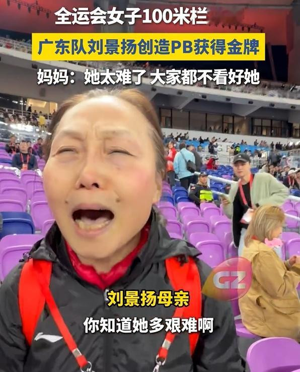 直播吧11月20日讯全运会女子100米栏决赛,刘景扬12秒81夺冠。赛后刘景扬姆妈濒临镜头落泪。